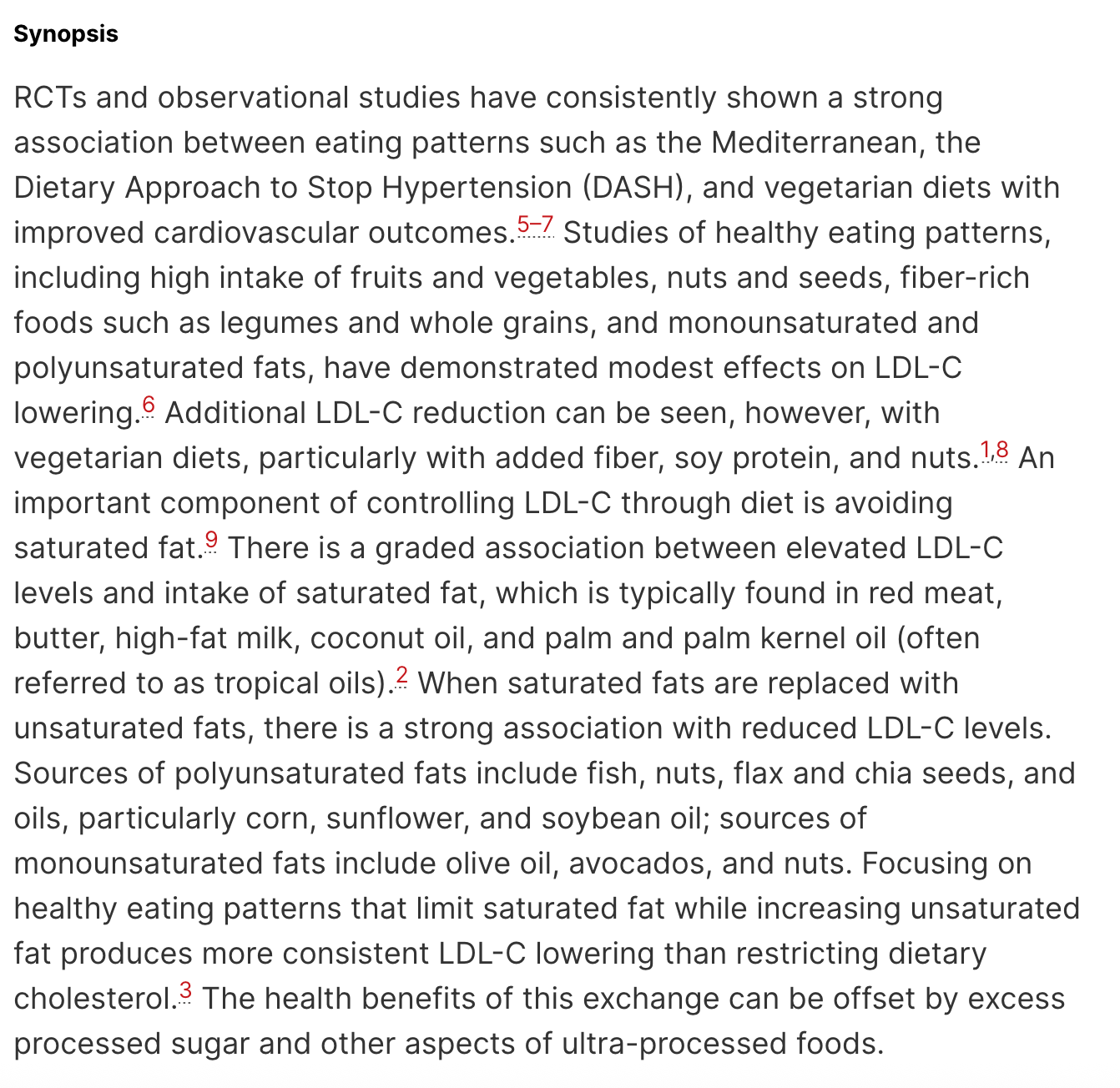A seção das diretrizes que discute a intervenção dietética é, talvez não surpreendentemente, um longo resumo, em um parágrafo inteiro, do pensamento convencional dos últimos 60 anos sobre dieta e doenças:
